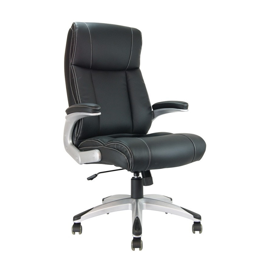 Offre un excellent confort grâce à son dossier haut enveloppant avec appui-tête intégré et son revêtement en simili cuir. Son mécanisme basculant centré, ses accoudoirs rembourrés et son piètement gris métallisé en font un siège fiable, élégant et adapté à une utilisation professionnelle quotidienne.
