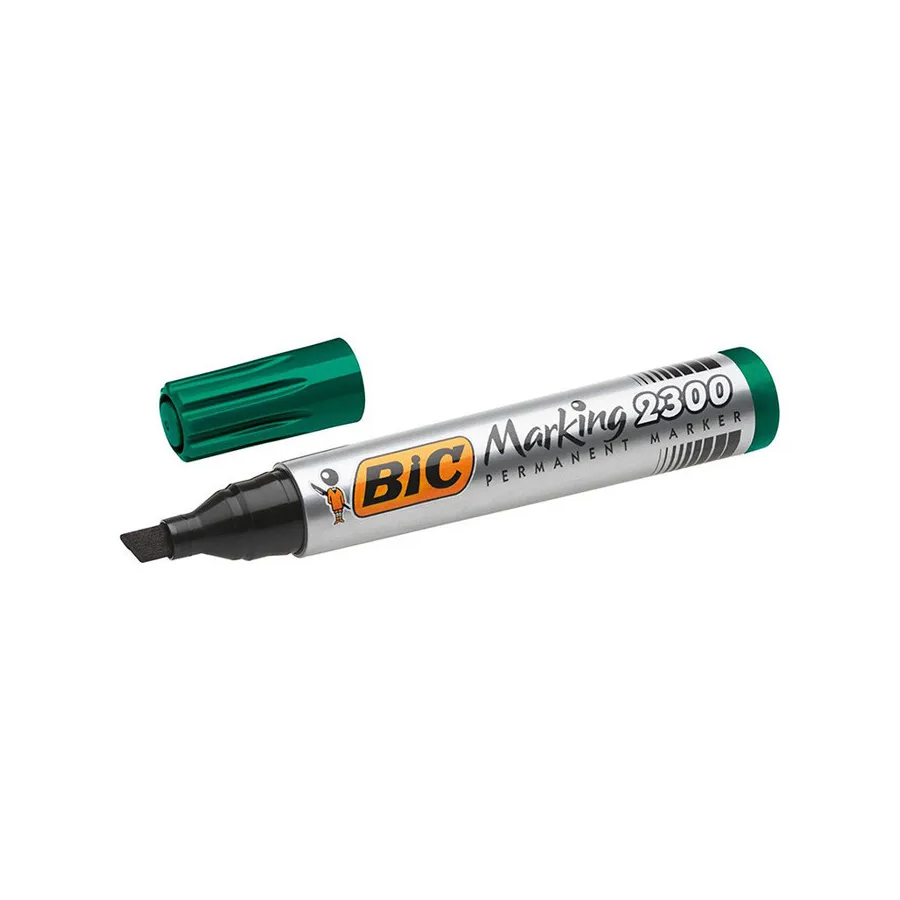 Marqueur permanent vert BIC Marking 2300 Ecolutions, pointe biseautée pour un tracé modulable, grande contenance d’encre à séchage rapide. Idéal bureau et maison.