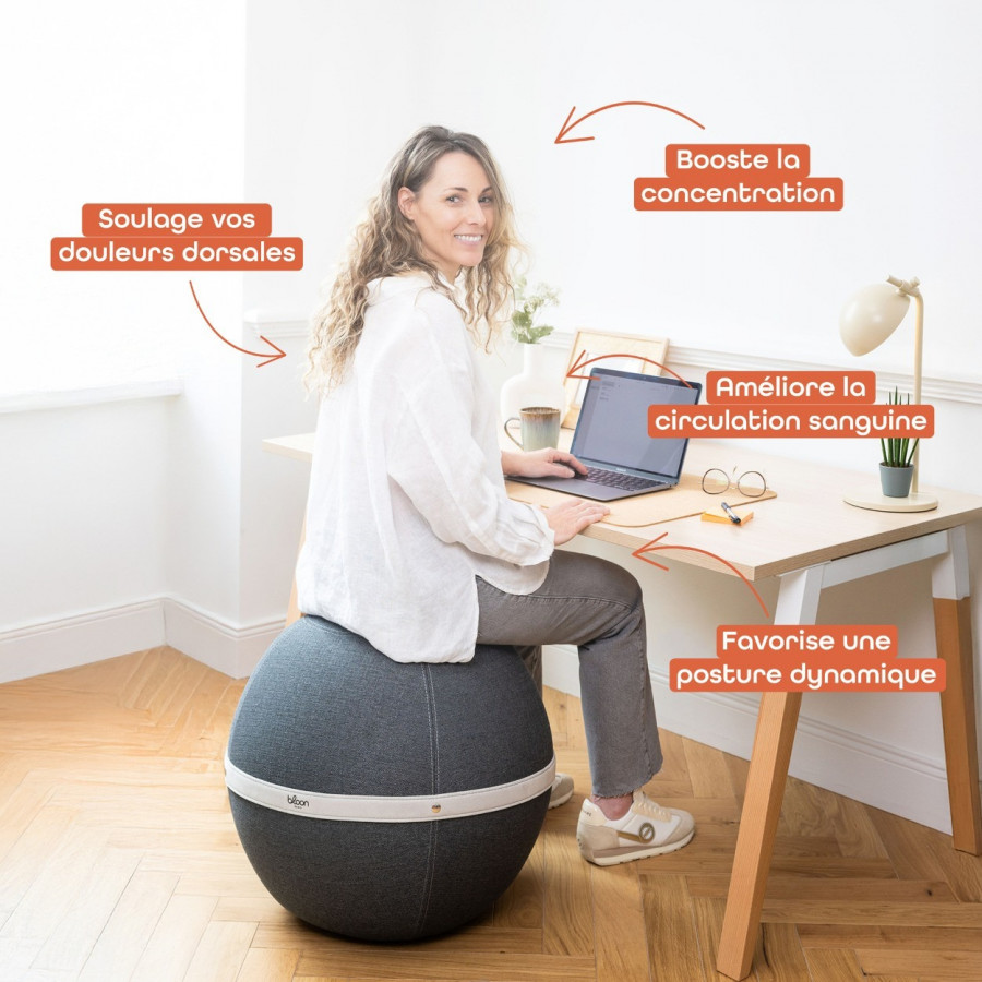 Renforcement musculaire : sa forme ronde et son assise dynamique sollicitent les muscles posturaux, aidant à prévenir les douleurs liées à une assise prolongée.